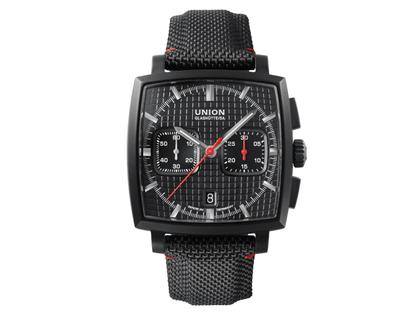 Das neue Design des Averin Chronograph ist optisch reduziert und setzt auf klare Linien und Formen. Die charakteristische, quadratische Form ist mit 41 x 41 Millimetern perfekt auf das Handgelenk abgestimmt. Das Modell ist mit einem Edelstahlgehäuse mit schwarzer DLC-Beschichtung und dem dazu passendem Zifferblatt komplett in Schwarz gehalten. Unterstrichen wird die moderne Formensprache durch ein beidseitig entspiegeltes Saphirglas, das in jeder Ecke gewölbt ist und so eine optische Tiefenwirkung erzeugt. Im Inneren tickt das mechanische Werk UNG-27.S2 mit Siliziumspirale und einer Gangreserve von mindestens 65 Stunden. Das Modell wird durch ein farblich abgestimmtes Textilband abgerundet, welches die Kachelstruktur des Zifferblattes stilvoll aufgreift.