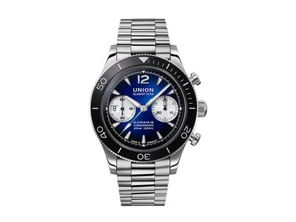 Union Glashütte Noramis Chronograph Sport Automatik Edelstahl 43mm blaues Zifferblatt Metallband