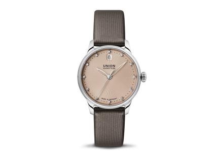 Die Seris Datum von Union Glashütte ist für selbstbewusste Frauen gedacht, die edle, feminine Formen schätzen und dennoch nicht auf die Eigenschaften einer mechanischen Uhr verzichten möchten. Zwei neue Modelle ergänzen nun die Seris Linie: eine stilvolle Variante mit strukturiertem Zifferblatt in Champagner sowie eine edle Umsetzung mit Perlmuttzifferblatt und 12 Diamanten als Indizes. Die schlichte Gestaltung hebt sich durch ein couragiert positioniertes Datum bei 12 Uhr ab. Damit die Trägerin sich individuell für jeden Anlass passend den Look selbst gestalten kann, wird die Uhr mit jeweils 2 weiteren Wechselbändern geliefert.
